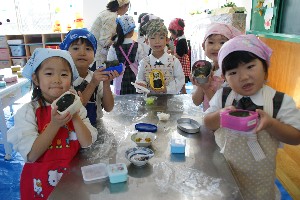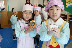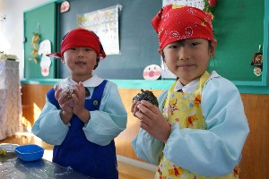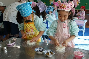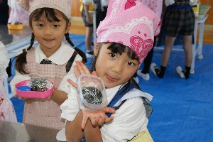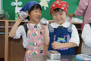 年長組がお楽しみクッキングで「おにぎり」を作りました!!いつもは作ってもらっているけれど、今日のおにぎりは自分で作りました!!どんなおにぎりが出来上がったでしょうか??お味は・・・