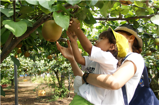 かぶと虫発見!!みて~ナシを食べてるよ!!