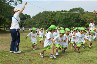 幼稚園のホールでお家の方と一緒に先生や同年齢のお友達とリトミックや体操をして楽しく遊びます。(無料)