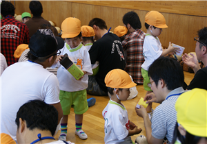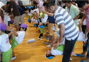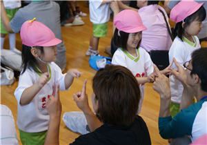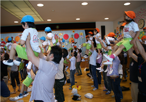 幼稚園のホールでお家の方と一緒に先生や同年齢のお友達とリトミックや体操をして楽しく遊びます。(無料)