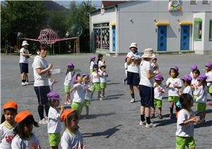 幼稚園のホールでお家の方と一緒に先生や同年齢のお友達とリトミックや体操をして楽しく遊びます。(無料)