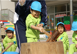 「よいしょ~!よいしょ~!よいしょ~!」の掛け声が園庭に響きわたりました。