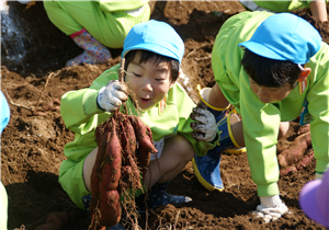 学年別にさつまいもほりに行きました♪おいもの種類は「紅あずま」!大きなさつまいもが沢山とれて子供たちはニコニコでした\(^^)/どんなお料理に変身したかな?(^^)?チャオクラブのお友達もがんばって掘ってきました☆