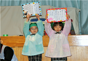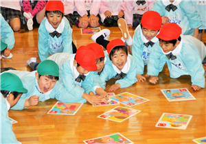 年長組は「かるた遊び」年中組は「絵あわせ遊び」