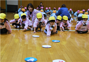 幼稚園のホールでお家の方と一緒に先生や同年齢のお友達とリトミックや体操をして楽しく遊びます。(無料)