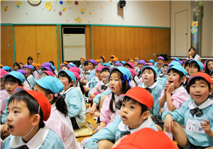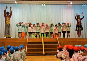 幼稚園のホールでお家の方と一緒に先生や同年齢のお友達とリトミックや体操をして楽しく遊びます。(無料)