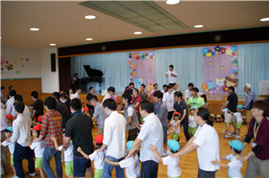 幼稚園のホールでお家の方と一緒に先生や同年齢のお友達とリトミックや体操をして楽しく遊びます。(無料)