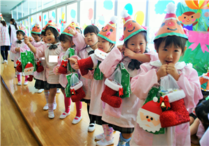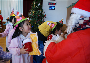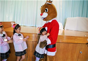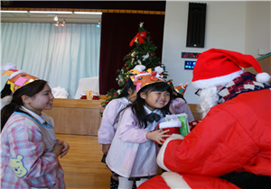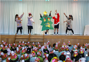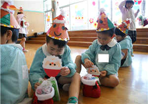 今日は子ども達が楽しみにしていたクリスマス会♪ 先生達のとっても面白い劇を見終わったら、どこからか鈴の音が♪・・・