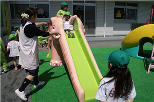 幼稚園のホールでお家の方と一緒に先生や同年齢のお友達とリトミックや体操をして楽しく遊びます。(無料)