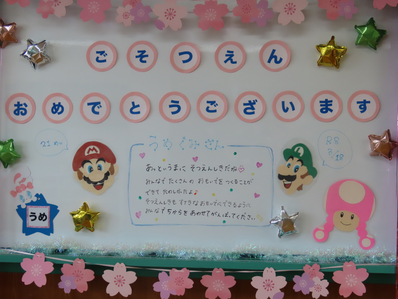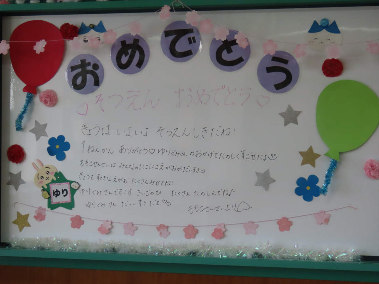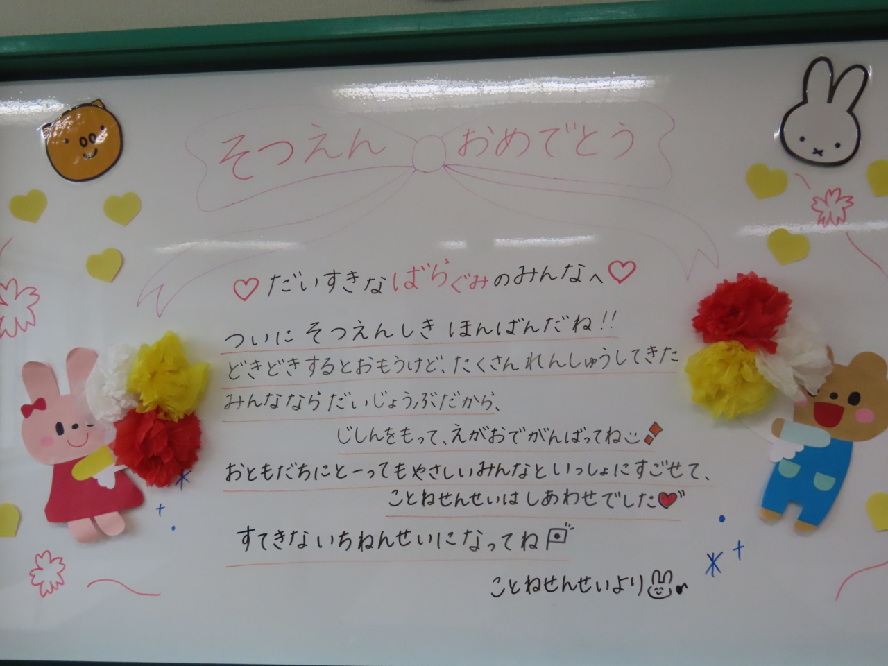 また会えることを楽しみにしています!! 卒園おめでとう!!